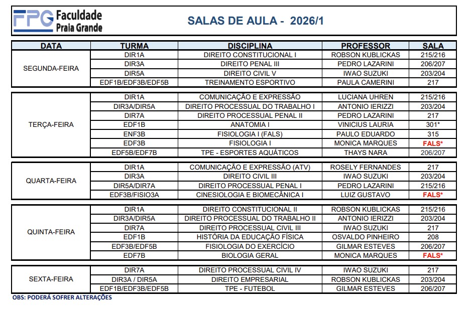 Mapa de Salas de Aula 2026/1