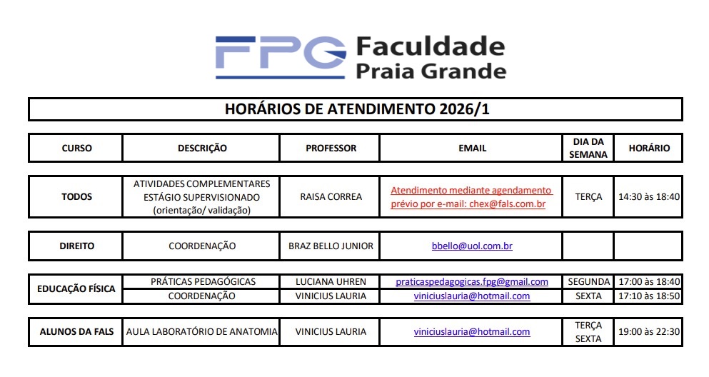 Horários de Atendimentos - Professores